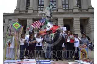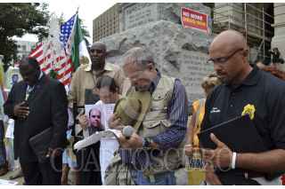 ATLANTA, GEORGIA, ESTADOS UNIDOS, 30AGOSTO2012.- La Caravana por la Paz, liderada por el poeta Javier Sicilia, llegó al estado de Georgia y su destino fue la capital, Atlanta. Visitaron la tumba de Martin Luther King, en donde dejaron flores para luego continuar con una marcha de poco más de un kilómetro hasta el Capitolio de la ciudad. Edward Dubose, representante de la Asociación Nacional de Gente de Color, los acompaño en la caravana. FOTO: ALEJANDRO PIÑA GODOY /CUARTOSCURO.COM