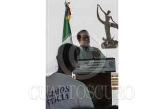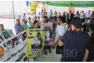 CIUDAD JUÁREZ, CHIHUAHUA, 30AGOSTO2012.- En medio de interrupciones orquestadas por madres de jovecitas desaparecidas, Alejandro Poiré, secretario de gobernación, dió un discurso en la estatua Memorial para Mujeres víctimas de homicidio por razones de género, que se ubica en Ejército Nacional FOTO: NACHO RUIZ /CUARTOSCURO.COM