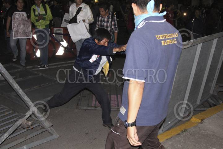MÉXICO, D.F., 30AGOSTO2012.- Jóvenes se manifestaron afuera del Tribunal Electoral del Poder Judicial de la Federación, por la posible resolución en torno a la elección presidencial a favor del candidato presidencial Enrique Peña Nieto, los inconformes jalaron las vallas que resguardaban la sede del TEPJF. FOTO: SAÚL LÓPEZ /CUARTOSCURO.COM