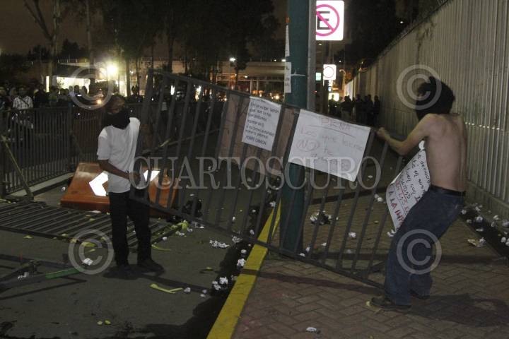 MÉXICO, D.F., 30AGOSTO2012.- Jóvenes se manifestaron afuera del Tribunal Electoral del Poder Judicial de la Federación, por la posible resolución en torno a la elección presidencial a favor del candidato presidencial Enrique Peña Nieto, los inconformes jalaron las vallas que resguardaban la sede del TEPJF. FOTO: SAÚL LÓPEZ /CUARTOSCURO.COM