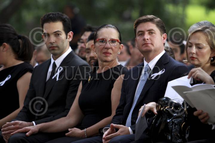 MONTERREY, NUEVO LEON, 30AGOSTO2012.- La noche de hoy se realizó una misa y un homenaje póstumo al empresario fallecido Don Roberto González Barrera que se llevó a cabo ante más de mil invitados entre amigos, empresarios y familiares en el jardín del Planetario Alfa. Los hijos del presidente y fundador de GRUMA estuvieron presentes, así como el director de tecnología de Gruma Manuel Rubio quien develó una placa en reconocimiento a la vida y obra del empresario, además el Gobernador de Nuevo León, Rodrigo Medina acompañó a la familia y dirigió unas palabras. FOTO: GABRIELA PÉREZ MONTIEL /CUARTOSCURO.COM