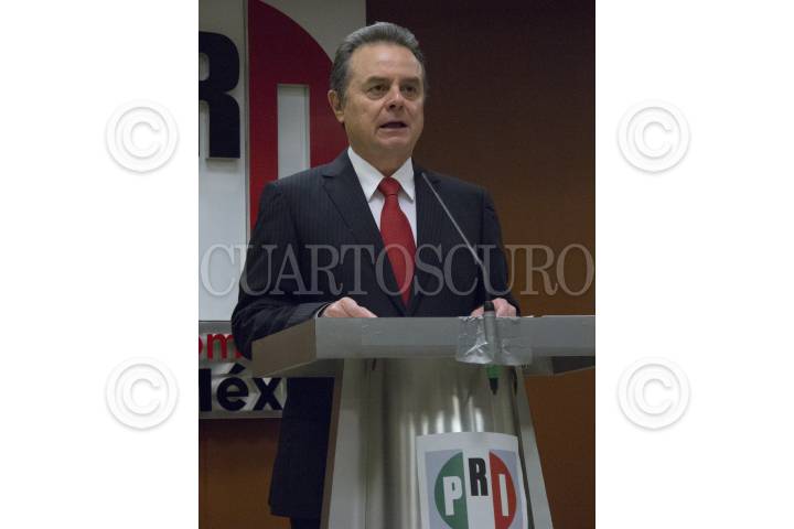 MÉXICO, D.F., 31AGOSTO2012.- Pedro Joaquín Coldwell, presidente nacional del PRI, ofreció una conferencia de prensa en la cual hablo sobre el fallo del Tribunal Electoral del Poder Judicial de la Federación el cual rechazo el proceso de invalidación de las elecciones promovido por el Movimiento Progresista y ratificó a Enrique Peña Nieto como presidente electo en las pasadas elecciones de julio, el priista llamó a los opositores de Peña a aceptar la resolución destacando la robusteza de los órganos electorales del país. FOTO: MOISÉS PABLO /CUARTOSCURO.COM