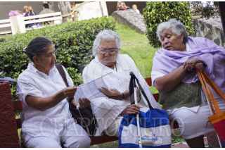 MÉXICO, D.F., 31AGOSTO2012.- Personas de la tercera edad acudieron a la explanada de la Delegacion Alvaro Obregon, en donde se llevó a cabo la "Feria del Aduylto Mayor", en ella se vendieron artesanías elaboradas por adultos mayores, así como también se realizaron diversas actividades culturales, y revisiones médicas gratuitas. Doña Francisa Reyes Mejía, originaria de San Juan Teotihuacán, Estado de México, quien nació nació el 2 de Diciembre de 1911, recibió un reconocimiento en el evento organizado por la delegación. FOTO: PEDRO ANZA /CUARTOSCURO.COM