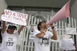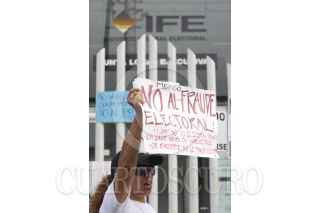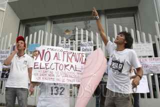 CUERNAVACA, MORELOS, 31AGOSTO2012.- Jóvenes del movimiento #Yosoy132 protestaron y volantearon frente a las instalaciones del Instituto Federal Electoral de Cuernavaca, ubicado en la calle de Ávila Camacho, para manifestarse en contra del reciente del fallo del Tribunal Electoral en el cual declaró a Enrique Peña Nieto como Presidente Electo de México. FOTO: ALMA LAFAYET /CUARTOSCURO.COM