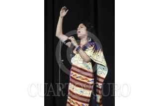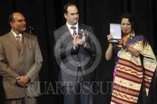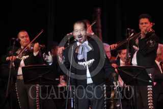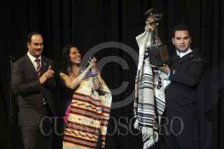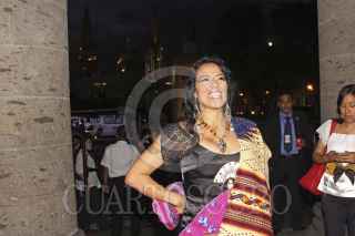 GUADALAJARA, JALISCO, 31AGOSTO2012.- Esta noche en el Teatro Degollado de esta ciudad y en el marco de la edición XIX del Encuentro Internacional del Mariachi y la Charrreria, se llevo un homenaje post mortem a la cantante Costarricense Chavela Vargas, en donde se hizo entrega del máximo Galardón que otorga la Cámara Nacional de Comercio de Guadalajara (CANACO), la estatuilla "Silvestre Vargas" la cual fue entregada de manos de la cantante Lila Down y el presidente de la Canaco Francisco Beckman a el productor de la cantante ya fallecida, Guillermo Sánchez. Dentro del mismo evento la cantante Lila Down recibió la medalla "Pepe Guizar". FOTO: FERNANDO CARRANZA GARCÍA /CUARTOSCURO.COM