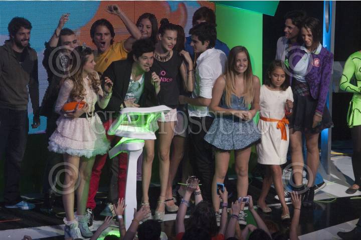 MÉXICO, D.F., 01SEPTIEMBRE2012.- El elenco de la telenovelas "Miss XV" se llevó el premio a mejor serie de televisión en los Kids Choice Awards 2012, que se realizaron la tarde de hoy en un centro de espectáculos ubicado a un costado del World Trade Center. FOTO: FRANCISCO RODRÍGUEZ /CUARTOSCURO.COM