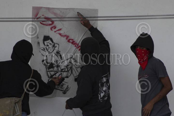 OAXACA, OAXACA, 01SEPTIEMBRE2012.- Un aproximado de 800 personas marcharon este medio día para recriminar al Tribunal Electoral del Poder Judicial de la Federación (TEPJF) la validación de las elecciones del pasado primero de julio y la entrega de la constancia de presidente electo al priista Enrique Peña Nieto.FOTO: ARTURO PÉRZ ALFONSO /CUARTOSCURO.COM