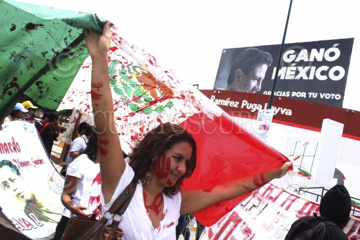 OAXACA, OAXACA, 01SEPTIEMBRE2012.- Un aproximado de 800 personas marcharon este medio día para recriminar al Tribunal Electoral del Poder Judicial de la Federación (TEPJF) la validación de las elecciones del pasado primero de julio y la entrega de la constancia de presidente electo al priista Enrique Peña Nieto.FOTO: ARTURO PÉRZ ALFONSO /CUARTOSCURO.COM