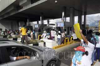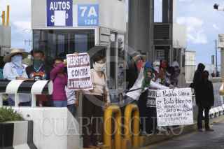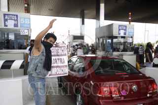 AMOZOC, PUEBLA, 01SEPTIEMBRE2012.- Integrantes del movimiento #YoSoy132 tomaron varios autobuses de transporte público para trasladarse a la caseta de cobro de Amozoc, permitiendo el libre paso sin costo para los automovilistas que circulaban en la zona, esto para manifestarse en contra de la resolución del Tribunal Electoral del Poder Judicial de la Federación que acreditó a Enrique Peña Nieto como Presidente Electo de México. FOTO: HILDA RÍOS /CUARTOSCURO.COM