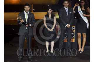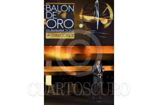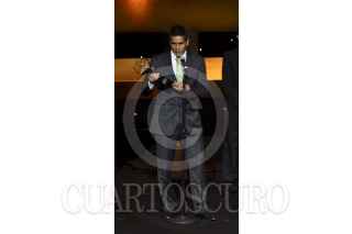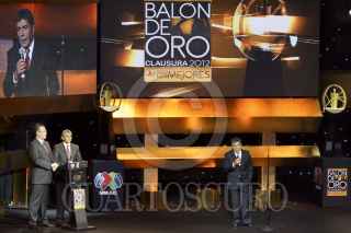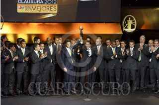 MÉXICO, D.F., 03SEPTIEMBRE2012.- Fue realizada la premiación del Balón de Oro, los trofeos a los mejores jugadores del torneo clausura 2012. En la imagen, el equipo de Santos Laguna recibe el trofeo al mejor equipo del campeonato. FOTO: ADOLFO VLADIMIR /CUARTOSCURO.COM