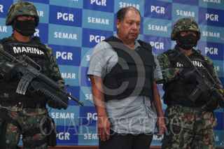MÉXICO, D.F., 05SEPTIEMBRE2012.- Mario Cardenas Guillen, el "M-1" y/o "El gordo", fue presentado en la Subprocuradoria de Investigación Especializada en Delincuencia Organizada luego de haber sido detenido en días pasados tras un operativo de la Marina. FOTO: ENRIQUE ORDÓÑEZ /CUARTOSCURO.COM