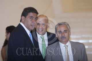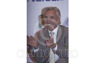MÉXICO, D.F., 06SEPTIEMBRE2012.- Los comentaristas de deportes, Raúl Orvañanos y Andre Marín de la cadena Fos Sport, acudieron la mañana de hoy al mueso Soumaya para escuchar el anuncio de la venta del 35 por ciento de las acciones de los equipo de futbol Tuzos del Pachuca y Panzas Verdes del León, además la cadena de deportes transmitirá los partidos del León mediante canal UNO, la cual también tiene los derechos de transmisión del equipo esmeralda. FOTO: FRANCISCO RODRÍGUEZ /CUARTOSCURO.COM
