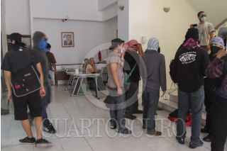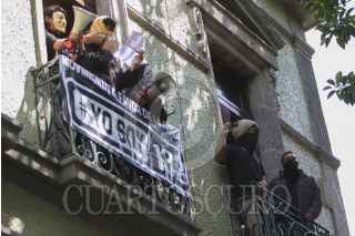 MÉXICO, D.F., 06SEPTIEMBRE2012.- Integrantes del movimiento Yosoy132, tomaron las instalaciones de la representación de Veracruz en la calle de Marsella donde estarán hasta las 10:00 pm en protesta por los actos de represión que han sufrido estudiantes del movimiento en Veracruz. FOTO: GUILLERMO PEREA /CUARTOSCURO.COM