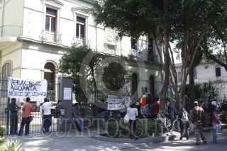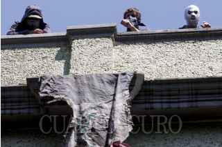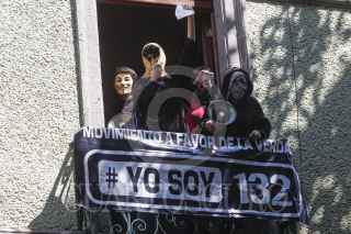 MÉXICO, D.F., 06SEPTIEMBRE2012.- Integrantes del movimiento Yosoy132, tomaron las instalaciones de la representación de Veracruz en la calle de Marsella donde estarán hasta las 10:00 pm en protesta por los actos de represión que han sufrido estudiantes del movimiento en Veracruz. FOTO: ENRIQUE ORDÓÑEZ /CUARTOSCURO.COM