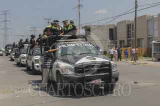 SAN VICENTE CHICOLOAPAN, ESTADO DE MÉXICO, 06SEPTIEMBRE2012.- Personal de la Agencia de Seguridad Ciudadana, realizó un operativo de vigilancia en las unidades habitacionales de Ciudad Galaxia, donde el día de ayer un grupo de mototaxistas se enfrentaron a golpes y dos de ellos perdieron la vida. FOTO: SAÚL LÓPEZ /CUARTOSCURO.COM