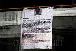 TEXCOCO, ESTADO DE MÉXICO, 06SEPTIEMBRE2012.- Fue encontrada una narcomanta con amenazas del grupo delictivo "Z" en un puente peatonal sobre la carretera Lecheria Texcoco a la altura de la Central de Abastos en este Municipio. FOTO: LUIS CARBAYO /CUARTOSCURO.COM