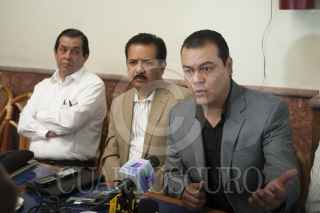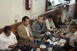 CIUDAD NEZAHUALCOYOTL, ESTADO DE MEXICO, 07SEPTIEMBRE2012.- El dirigente estatal del Partido de la Revolución Democrática, Juan Hugo de la Rosa, el senador por el estado de México y Luis Sánchez Jiménez ofrecieron una conferencia de prensa donde se deslindaron de Movimiento Ciudadano, organización a la que pertenece Francisco Fernández "El Tun Tun" el cual liderea a la organizaciones de moto-taxis del Municipio de Chicoloapan y que se enfrentó el pasado miércoles aintegrantes de Antorcha Campesina dejando como saldo un muerto, derivado de todo esto ayer circuló en todo el municipio y colindantes rumores de turbas asaltando, disparando y quemando negocios lo que generó una psicosis que obligó a la gente acerrar negocios y escuelas. FOTO: FRANCISCO RODRÍGUEZ / CUARTOSCURO.COM