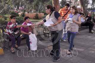 MÉXICO, D.F., 07SEPTIEMBRE2012.- Ante la crisis de miedo que generaron los rumores, personal de la delegación Iztapalapa, emprendieron un programa de información y volanteo para tranquilizar a la ciudadanía. FOTO: CUARTOSCURO.COM