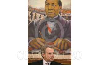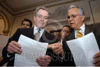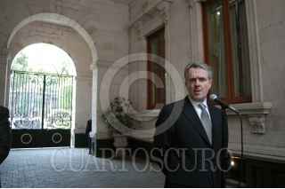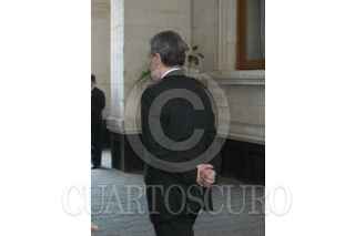 MEXICO D.F. 28ABRIL2005.- El secretario de Gobernaciòn Santiago Creel ofreció una conferencia de prensa en los pasillos de la dependencia. El funcionario federal calificó como "fuego amigo anticipado" la exigencia del diputado panista Juan Molinar Horcasitas de que renuncie a su cargo. FOTO: Germàn Romero/CUARTOSCURO.COM