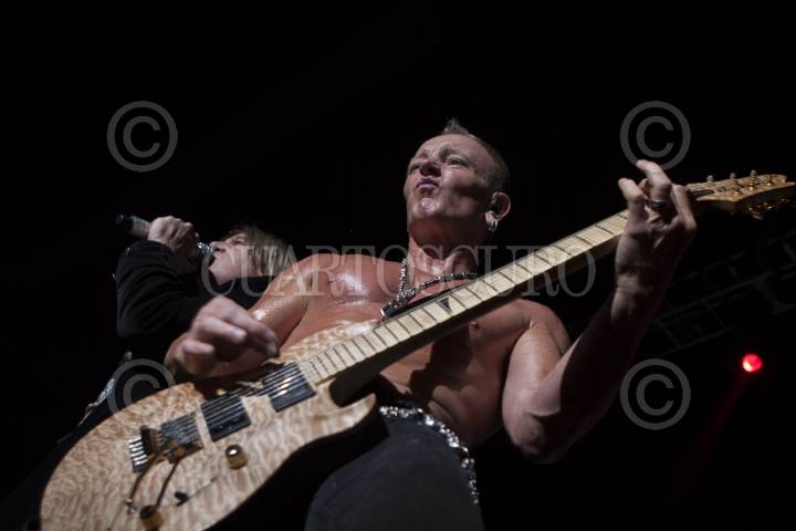 MÉXICO, D.F., 09SEPTIEMBRE2012.- La banda de rock inglesa Def Leppard se presentó la noche de hoy en la Arena de la Ciudad de México con un lleno total, la banda realiza la gira "Rock of Ages" en conjunto con la banda nortamericana Poison. Joe Elliot lider de la banda interpretó junto a sus compañeros canciones emblemáticas como "Animal" "Hysteria" y "Women" entre otras por poco mas de dos horas. FOTO: FRANCISCO RODRÍGUEZ /CUARTOSCURO.COM