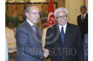 SINGAPUR, REPÚBLICA DE SIGAPUR, 10SEPTIEMBRE2012.- Felipe Calderón Hinojosa, presidente de México, durante la durante la reunión con su homólogo Sr Tony Tan Keng Yam, presidente de la República de Singapur, la cual se llevó a cabo en el palacio presidencial Istana. FOTO: ALBERTO LEMUS /CUARTOSCURO.COM