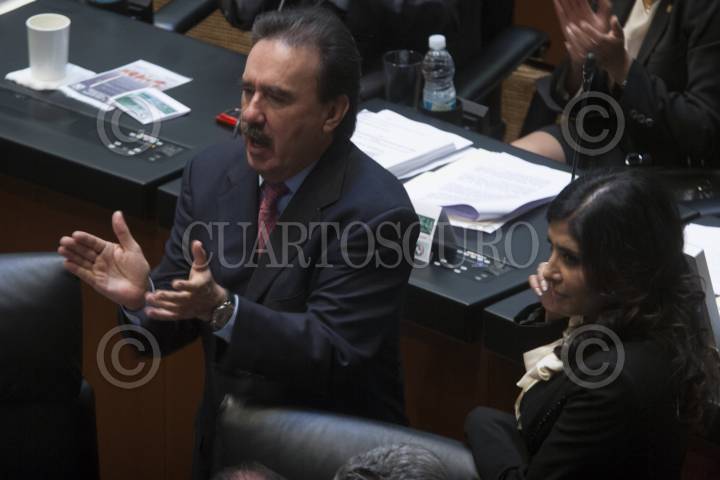 MÉXICO, D.F., 11SEPTIEMBRE2012.- Los senadores, Angélica de la Peña y Manuel Camacho Solís, ambos del PRD, dialógan durante la sesión ordinaria de la LXII legislatura de la cámara de senadores. FOTO: FRANCISCO RODRÍGUEZ /CUARTOSCURO.COM