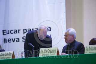 MÉXICO, D.F 11SEPTIEMBRE2012.- La Conferencia del Episcopado Mexicano, encabezado por Carlos Aguiar Retes, arzobispo de Tlalnepantla y presidente de esta conferencia, y por Alfonso Cortés, obispo de Cuernavaca y presidente de la Dimensión Pastoral Educativa, se pronunciaron por una reforma educativa, la cual consideran, es urgente y en donde la labor del “sindicato” ha propiciado corrupción y malos manejos en el sistema educativo. En su carta pastoral y en el foro “Educar para una nueva sociedad” se destaca que al libro de texto gratuito se precisa que como sociedad se debe participar para que los contenidos de programas y libros de texto puedan reflejar “no una ideología parcial y tendenciosa sino una verdadera propuesta educativa. FOTO: JUAN PABLO ZAMORA /CUARTOSCURO.COM