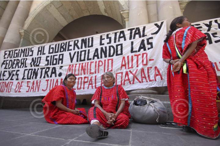 OAXACA, OAXACA, 12SEPTIEMBRE2012.- Desplazados de San Juan Copala se reunieron frente al Palacio de Gobierno para conmemorar dos años de haber sido expulsados por grupos paramilitares de dicha comunidad ubicada en la región de la Mixteca . Anunciaron que pasarán la noche ahí como lo hicieron por más de un año. FOTO: ARTURO PÉREZ ALFONSO /CUARTOSCURO.COM