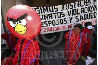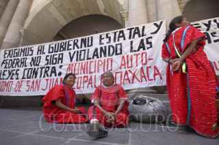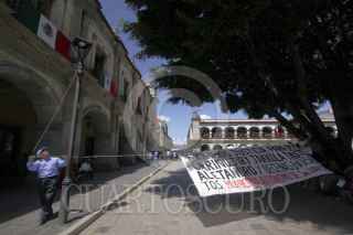 OAXACA, OAXACA, 12SEPTIEMBRE2012.- Desplazados de San Juan Copala se reunieron frente al Palacio de Gobierno para conmemorar dos años de haber sido expulsados por grupos paramilitares de dicha comunidad ubicada en la región de la Mixteca . Anunciaron que pasarán la noche ahí como lo hicieron por más de un año. FOTO: ARTURO PÉREZ ALFONSO /CUARTOSCURO.COM