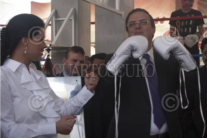MÉXICO D.F., 13SEPTIEMBRE2012.- La tarde de hoy fue inaugurado la Preparatoria "José Guadalupe Posada" en el corazón del barrio bravo de Tepito, las instalaciones ademas de impartir el sistema escolarizado y a distancia, cuenta con un gimnasio para la práctica del Box, además de talleres de Cultura de Belleza, Karate, Natación y computación. Al acto acudieron el jefe de gobierno, Marcelo Ebrard Casaubon y su esposa Rosalinda Bueso. FOTO: FRANCISCO RODRÍGUEZ /CUARTOSCURO.COM