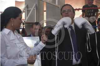 MÉXICO D.F., 13SEPTIEMBRE2012.- La tarde de hoy fue inaugurado la Preparatoria "José Guadalupe Posada" en el corazón del barrio bravo de Tepito, las instalaciones ademas de impartir el sistema escolarizado y a distancia, cuenta con un gimnasio para la práctica del Box, además de talleres de Cultura de Belleza, Karate, Natación y computación. Al acto acudieron el jefe de gobierno, Marcelo Ebrard Casaubon y su esposa Rosalinda Bueso. FOTO: FRANCISCO RODRÍGUEZ /CUARTOSCURO.COM