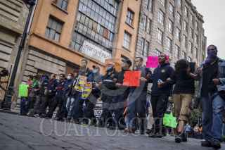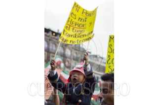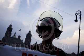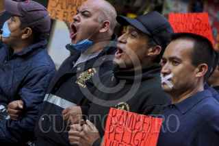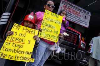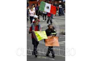 MÉXICO, D.F., 13SEPTIEMBRE2012.- Bomberos, familiares y jóvenes del Yo soy 132 Acampada Revolución, marcharon desde la estación de Bomberos Ave Fenix al Zócalo capitalino, en protesta por la represión sufrida la madrugada de hoy cuando fueron desalojados del plantón que realizan en la Plaza de la Constitución. Los diez bomberos que se encuentran en huelga de hambre en demanda de la reinstalación en sus puestos de trabajo, ya que fueron despedidos injustificadamente por el gobierno del Distrito Federal; mantendrán su lucha en el monumento a la revolución junto con los jóvenes del Yo soy 132. FOTO: ADOLFO VLADIMIR /CUARTOSCURO.COM