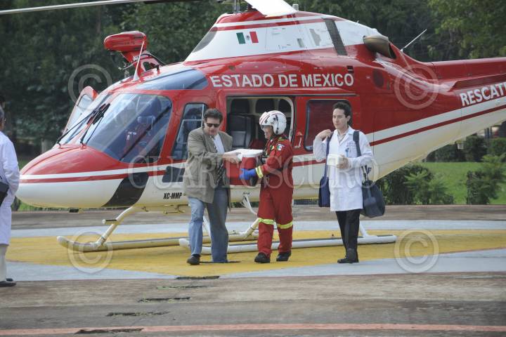 MÉXICO, D.F., 14SEPTIEMBRE2012.- Esta mañana arribó un helicóptero al Hospital Magdalena de Las Salinas con un Hígado procedente de Mérida, el cual será trasplantado en el Hospital La Raza. Dicho órgano arribo a la ciudad de Toluca en avión y de ahí en helicóptero al hospital, de donde salió abordo de una ambulancia al hospital La Raza. FOTO: LUIS CARBAYO /CUARTOSCURO.COM