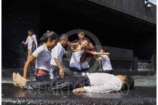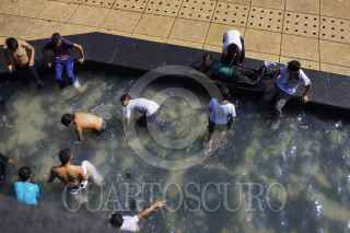 MÉXICO, D.F., 15SEPTIEMBRE2012.- Jóvenes estudiantes de primaria y secundaria, aprovechan las altas temperaturas para darse un chapuzón en una fuente ubicada en las inmediaciones del Monumento a la Revolución. FOTO: PEDRO ANZA /CUARTOSCURO.COM