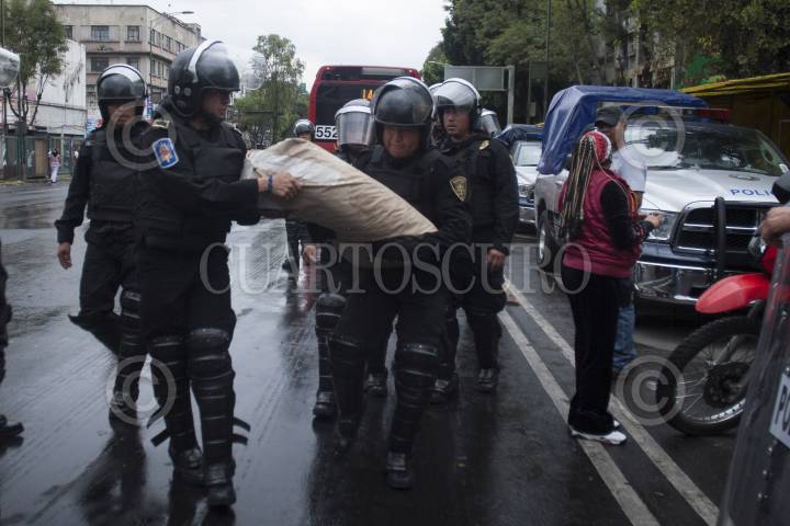 MÉXICO, D.F., 15SEPTIEMBRE2012.- Elementos de la Secretaria de Seguridad Pública, realizaron un decomiso de juegos piroténcios la tarde de hoy en las inmediaciones de la Merced, por tal hecho fueron detenidas varias personas y la cantidad de fuegos piriténicos alcanzo la media tonelada, a la salida de la autoridad de la zona los comerciantes despidieron a los uniformados con cohetones e improperios. FOTO: FRANCISCO RODRÍGUEZ /CARTOSCURO.COM