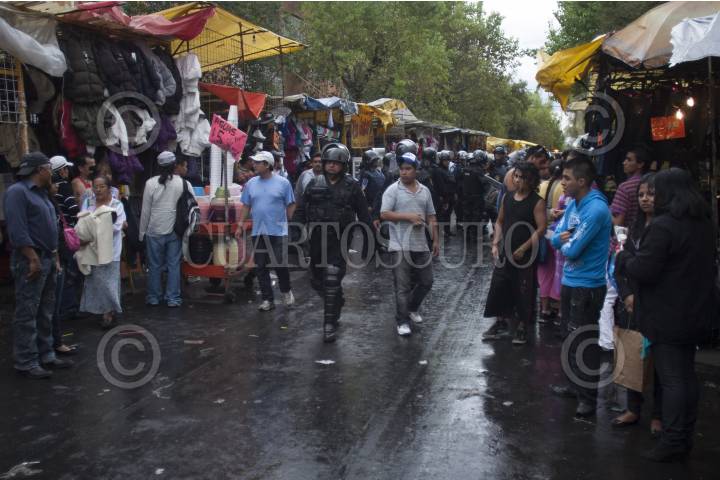 MÉXICO, D.F., 15SEPTIEMBRE2012.- Elementos de la Secretaria de Seguridad Pública, realizaron un decomiso de juegos piroténcios la tarde de hoy en las inmediaciones de la Merced, por tal hecho fueron detenidas varias personas y la cantidad de fuegos piriténicos alcanzo la media tonelada, a la salida de la autoridad de la zona los comerciantes despidieron a los uniformados con cohetones e improperios. FOTO: FRANCISCO RODRÍGUEZ /CARTOSCURO.COM