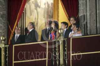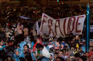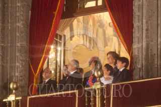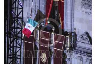 MÉXICO, D.F. 15SEPTIEMBRE2012.- Felipe Calderón, durante su último grito enmedio de la lluvia, fué acompañado por su esposa e hijos, así como por los presidentes de las cámaras de Diputados, Jesús Murillo Karam, y de Senadores, Ernesto Cordero. FOTO: JUAN PABLO ZAMORA /CUARTOSCURO.COM