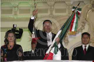 PUEBLA, PUEBLA, 16SEPTIEMBRE2012.- El gobernador Rafael Moreno Valle, encabezó la ceremonia del grito de independencia en el balcón del palacio municipal de la ciudad de Puebla. FOTO: HILDA RÍOS /ARCHIVO /CUARTOSCURO.COM
