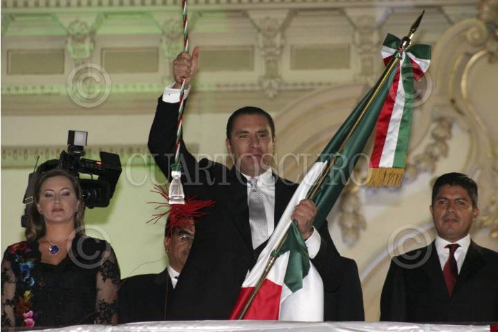 PUEBLA, PUEBLA, 16SEPTIEMBRE2012.- El gobernador Rafael Moreno Valle, encabezó la ceremonia del grito de independencia en el balcón del palacio municipal de la ciudad de Puebla. FOTO: HILDA RÍOS /ARCHIVO /CUARTOSCURO.COM