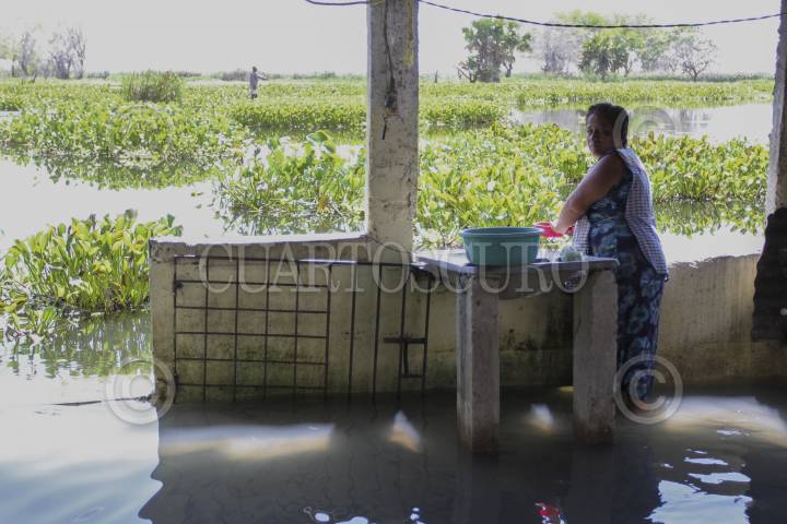 CENTLA, TABASCO, 17SEPTIEMBRE2012.- El río González provocó desbordamientos en la comunidad "El Espino" donde al menos cincuenta familias campesinas se encuentran inundadas y anegadas por el afluente. Así mismo se observo que en una zona y sobre la carretera federal Villahermosa-Centla, tres familias establecieron casas implovisadas a base de laminas y plástico; sin embargo en el territorio tabasqueño no ha caído lluvias, siendo una situación fuera de lo común. FOTO: MARCO POLO GUZMÁN HERNÁNDEZ /CUARTOSCURO.COM
