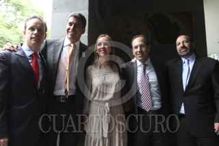 MÉXICO, D.F., 18SEPTIEMBRE2012.- Adriana Castro de Alverde, Presidente Fundadora de la Asociación Ale, IAP, Marco Antonio Slim Domit, Presidente del Consejo Directivo del Instituto de Salud Carlos Slim de la Salud y Patricio Slim Domit, al termino de la Presentación de la Campaña “Héroes por la Vida”, que tiene como fin impulsar la donación de órganos en las instalaciones de la Secretaria de Salud.. FOTO: GUILLERMO PEREA /CUARTOSCURO.COM