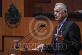 MÉXICO, D.F., 18SEPTIEMBRE2012.- Manuel Bartlett Diaz senador por el Partido del Trabajo en su intervención en la Sesión ordinaria en el senado este martes FOTO: CUARTOSCURO.COM