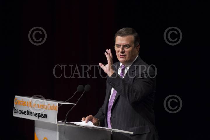 MÉXICO, D.F., 18SEPTIEMBRE2012.- Marcelo Ebrard Casaubón, Jefe de Gobierno, saluda Miguel Ángel Mancera, Jefe de Gobierno Electo, durante la exposición del Sexto de Informe de Gobierno de Ebrard. El perredista afirmó que luego de concluir su gestión se encaminará hacia la contienda electoral del 2018, la cita fue en el Auditorio Nacional. FOTO: MOISÉS PABLO /CUARTOSCURO.COM