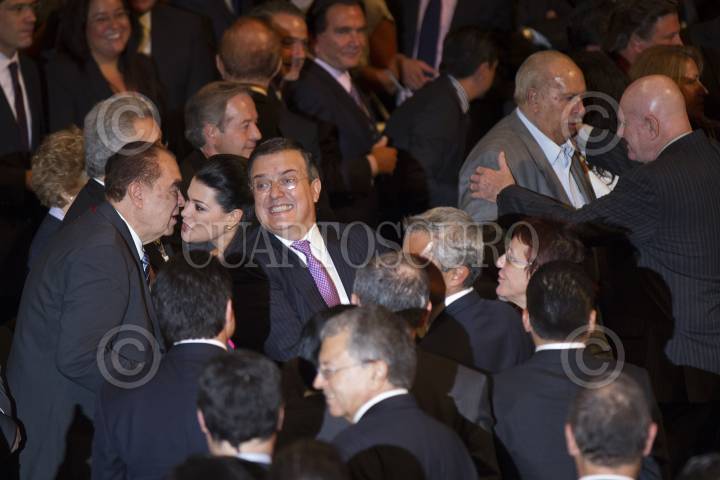 MÉXICO, D.F., 18SEPTIEMBRE2012.- Marcelo Ebrard Casaubón, Jefe de Gobierno, saluda Miguel Ángel Mancera, Jefe de Gobierno Electo, durante la exposición del Sexto de Informe de Gobierno de Ebrard. El perredista afirmó que luego de concluir su gestión se encaminará hacia la contienda electoral del 2018, la cita fue en el Auditorio Nacional. FOTO: MOISÉS PABLO /CUARTOSCURO.COM