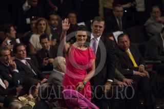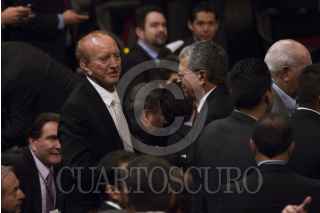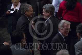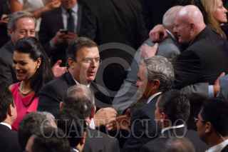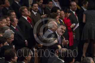 MÉXICO, D.F., 18SEPTIEMBRE2012.- Marcelo Ebrard Casaubón, Jefe de Gobierno, saluda Miguel Ángel Mancera, Jefe de Gobierno Electo, durante la exposición del Sexto de Informe de Gobierno de Ebrard. El perredista afirmó que luego de concluir su gestión se encaminará hacia la contienda electoral del 2018, la cita fue en el Auditorio Nacional. FOTO: MOISÉS PABLO /CUARTOSCURO.COM