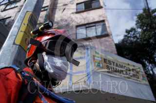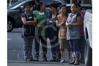MÉXICO, D.F., 19SEPTIEMBRE2012.- En punto de las 10:00 hrs inició el macrosimulacro en la capital del país. Edificios públicos y privados fueron deasalojados luego de que la alarma sísmica fuera activada, las personas se concentraron en los puntos de concentración previamente indicada por Protección Civil. Con esta movilización se recordaron los 27 años del sismo de 8.1 grados en escala de Richter, el cual ocasionó miles de muertes. FOTO: ADOLFO VLADIMIR /CUARTOSCURO.COM