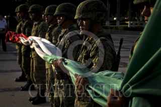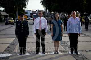 CULIACAN, SINALOA, 19SEPTIEMBRE2012.- A primera hora del día se llevo acabo en la explanada de palacio de gobierno el izamiento de la bandeara mexicana en conmemoración al terremoto de 1985, también se reconoció la labor de la institución de protección civil que fue fundada debido a estos hechos históricos. FOTO: RASHIDE FRIAS /CUARTOSCURO.COM
