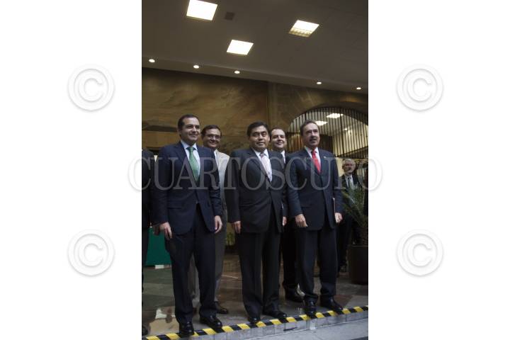 MÉXICO, D.F., 19SEPTIEMBRE2012.- El presidente de la mesa directiva del Senado Ernesto Cordero-Arroyo, conversa con el presidente del Instituto Belisario Domínguez Miguel Barbosa, durante la ceremonia de instalación del comite directivo del Instituto Belisario Domíguez, que será presidido por el perredista Miguel Barbosa. En la imagen también se aprecia al senador priista Roberto Armando Albores. FOTO: MOISÉS PABLO /CUARTOSCURO.COM