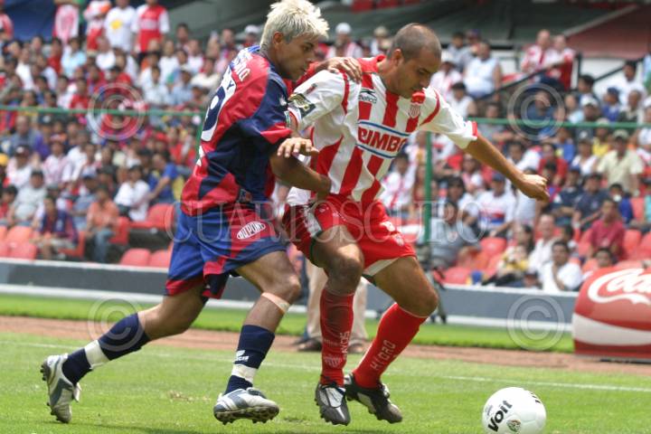 MEXICO, D.F. 01MAYO2005.- Sebastian González " chamagol" y Sebastian Galaz, festejan uno de los dos goles anotados durante el primer tiempo del partido de claudsura 2005, contra el Necaxa. Los Rayos Rojos quedaron triunfadores con tres goles. FOTO: Sandra Perdomo/CUARTOSCURO.COM