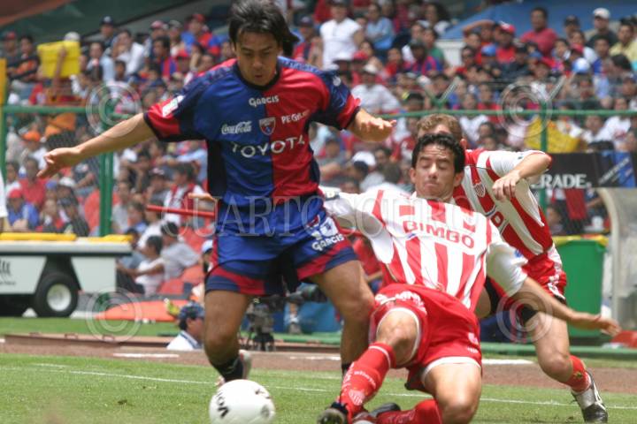 MEXICO, D.F. 01MAYO2005.- Sebastian González " chamagol" y Sebastian Galaz, festejan uno de los dos goles anotados durante el primer tiempo del partido de claudsura 2005, contra el Necaxa. Los Rayos Rojos quedaron triunfadores con tres goles. FOTO: Sandra Perdomo/CUARTOSCURO.COM